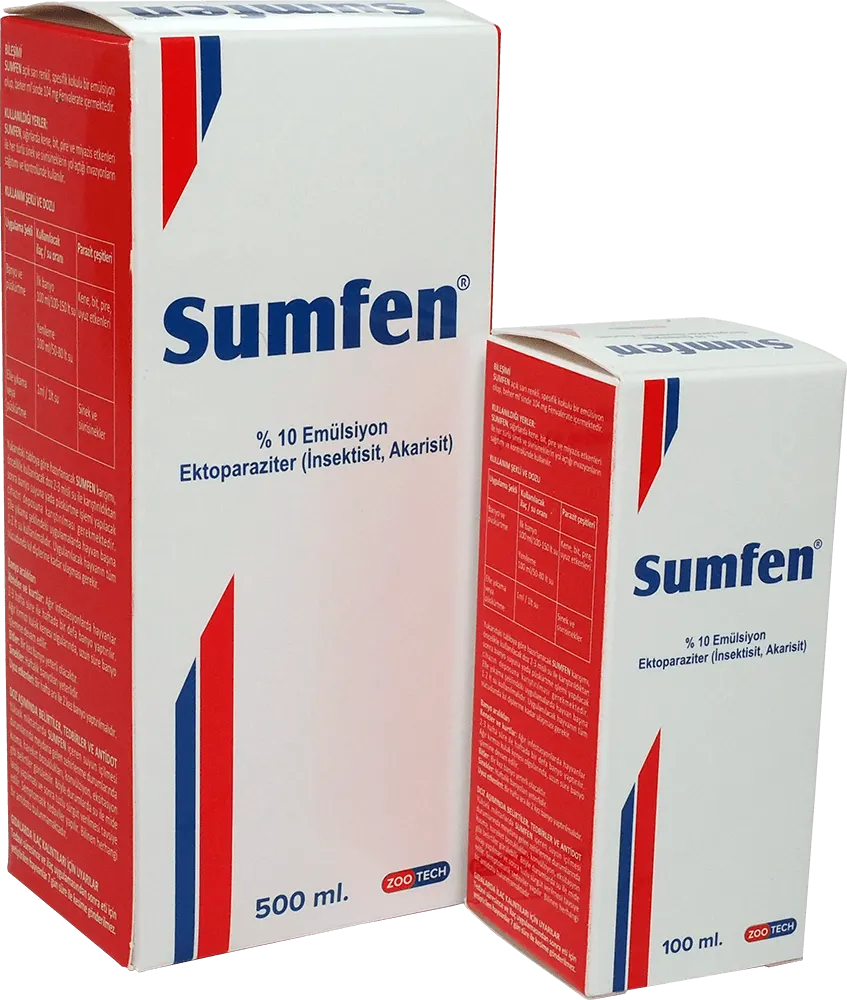 Sumfen, sentetik 3. kuşak piretroid türevi bir insektisitdir. Sumfen, evcil hayvanlarda karşılaşılan başlıca dış parazitlere yönelik geniş bir antiparaziter spektrum sağlar. Temas ve mide zehiri olarak etki gösterir. İnsekt parazitler üzerinde güçlü ve hızla yere serici etkinliği en dikkat çekici özelliğidir. İlaçla temas eden insektlerde hemen paraliz oluşarak ölüm meydana gelir. Güçlü insektisidal etkinliği ile duyarlı parazitlerin yumurta, larva ve ergin şekilleri üzerinde etkili olur. Sumfen lipofilik nitelikte olup parazit insektin lipoid moleküllerinden zengin kütikilasından kolayca geçerek etki noktalarına ulaşır. İnsekt parazitin sinir sistemini uyararak dengesiz hareketler, uyumsuzluk, konvülziyon, genel felç, komadan sonra hızla ölüm meydana getirir. Düşük konsantrasyonlarda bile etkisini gösterebilmektedir. Parazitlerin organizmasındaki enzimatik etkilere ve çevre koşullarına dayanıklı olduğu için yeterli kalıcı etkinliğe sahiptir. SUMFEN, evcil hayvanlardaki bit, pire, tek ve çok konakçılı kenelere, uyuz ve miyazis etkenlerine, ısırıcı ve kan emici böceklere karşı etkilidir.